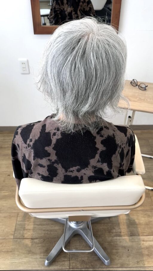 カットする前、白髪もかなり気にしているので毎回しっかり染めます。