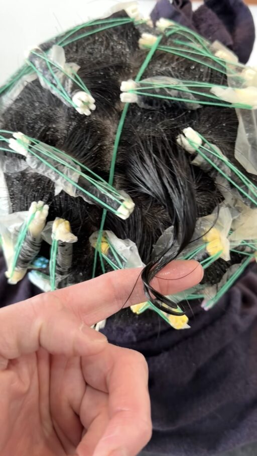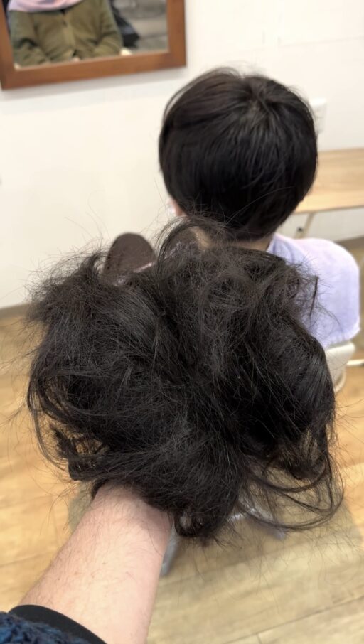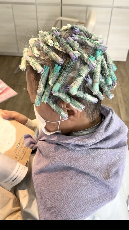 パーマのため短すぎないようにカット、その後パーマしていきます