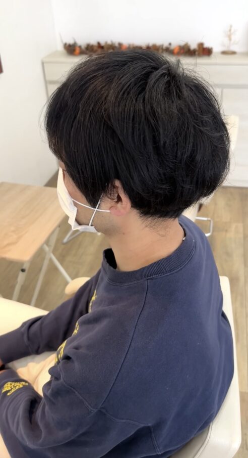襟足を刈り上げて、全体的にはパーマの事を考えて揃える程度